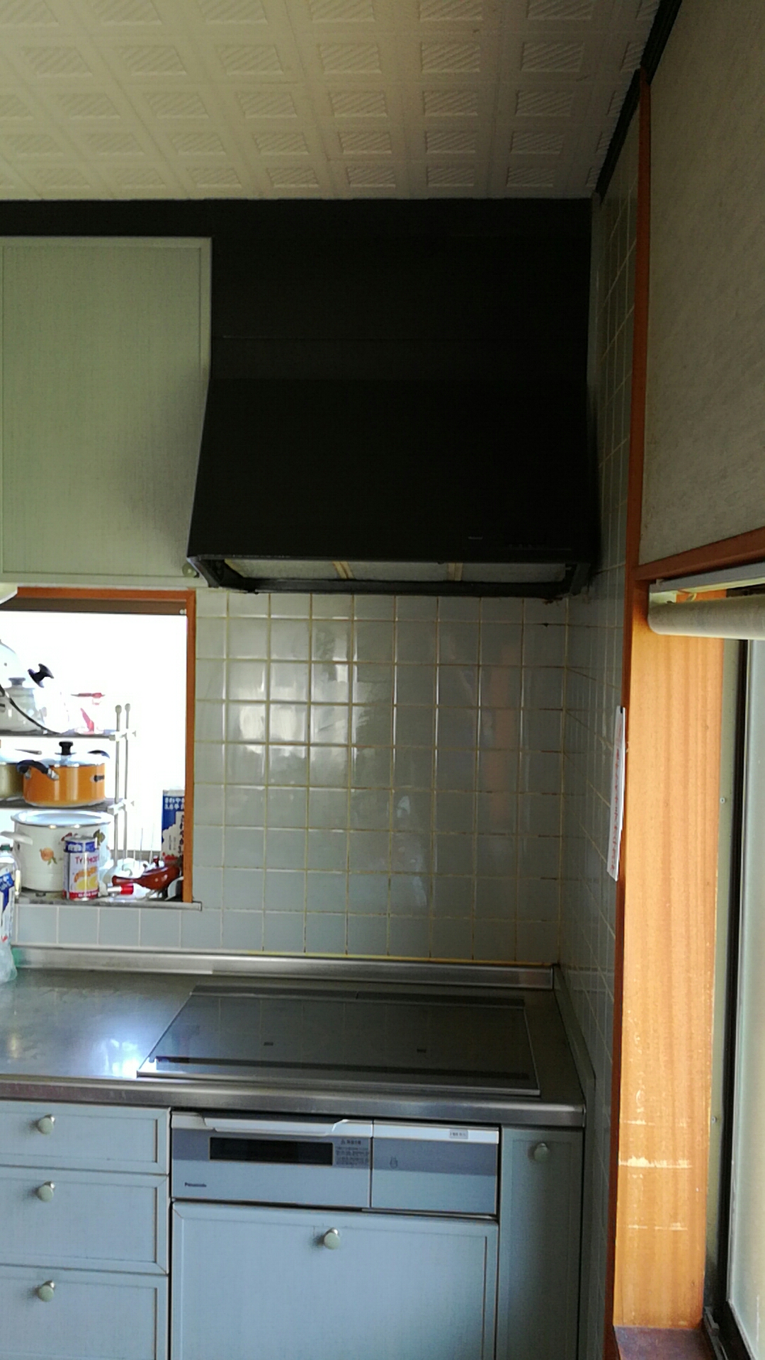 今回は、IHコンロとの同時購入いただきましたので、換気扇とIHコンロの自動連動にしていただきました。コンロを使うと自動的に換気扇が運転します。