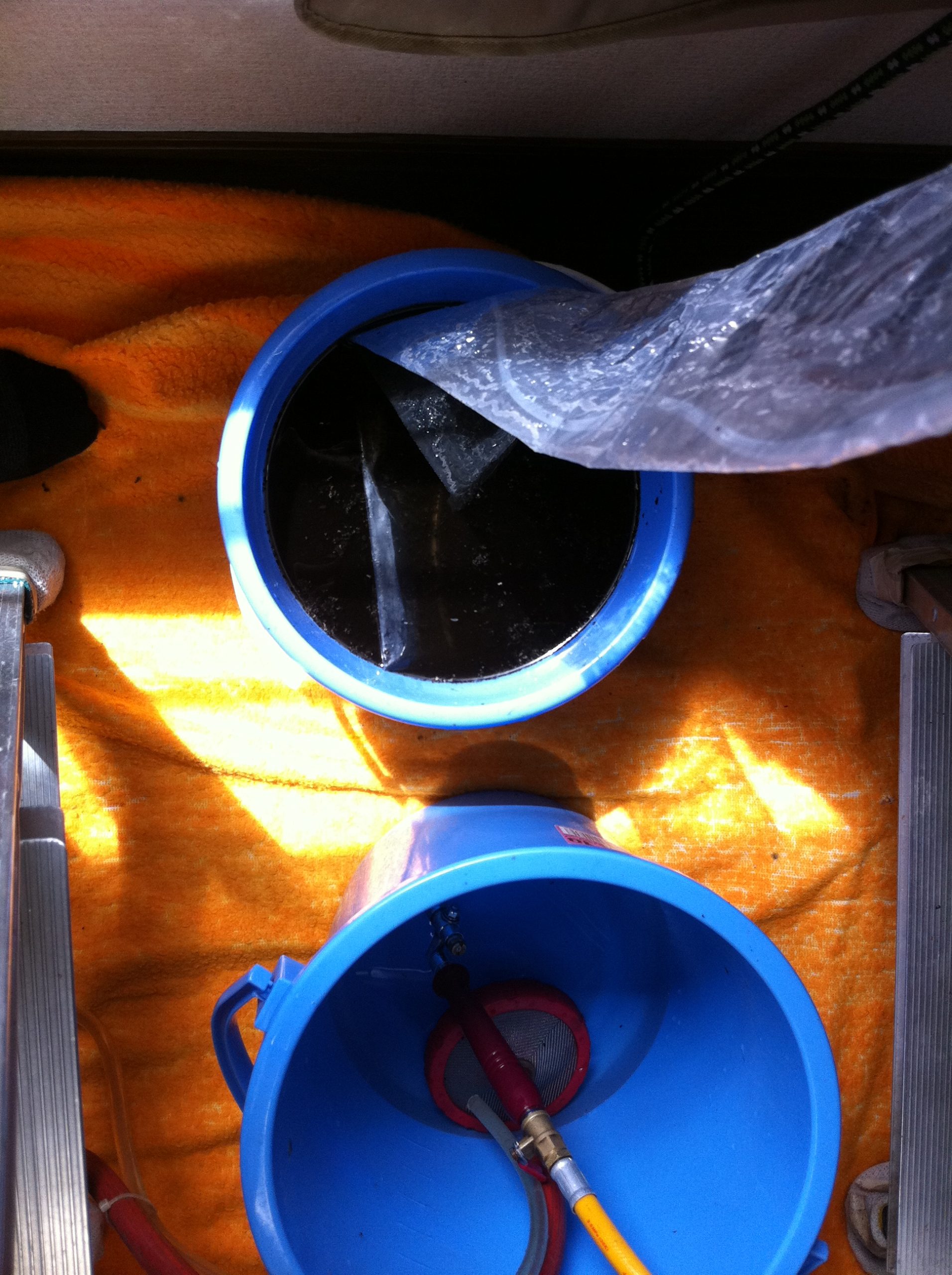 専用洗剤を使用した後に、水ですすいでいるところです。