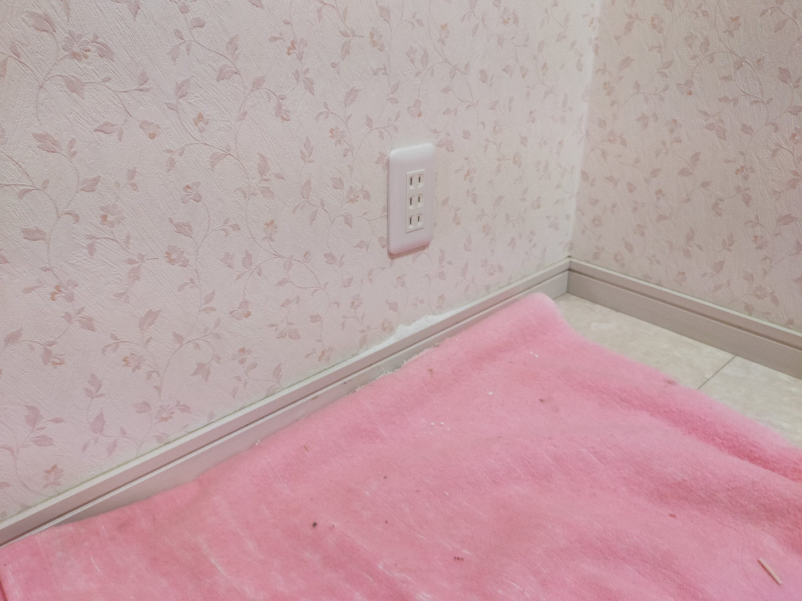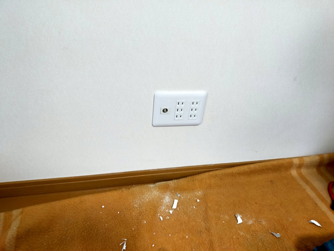 いままではコンセントが2個だったので6個差し込めるコンセントにする為、壁面開口部を広げる。