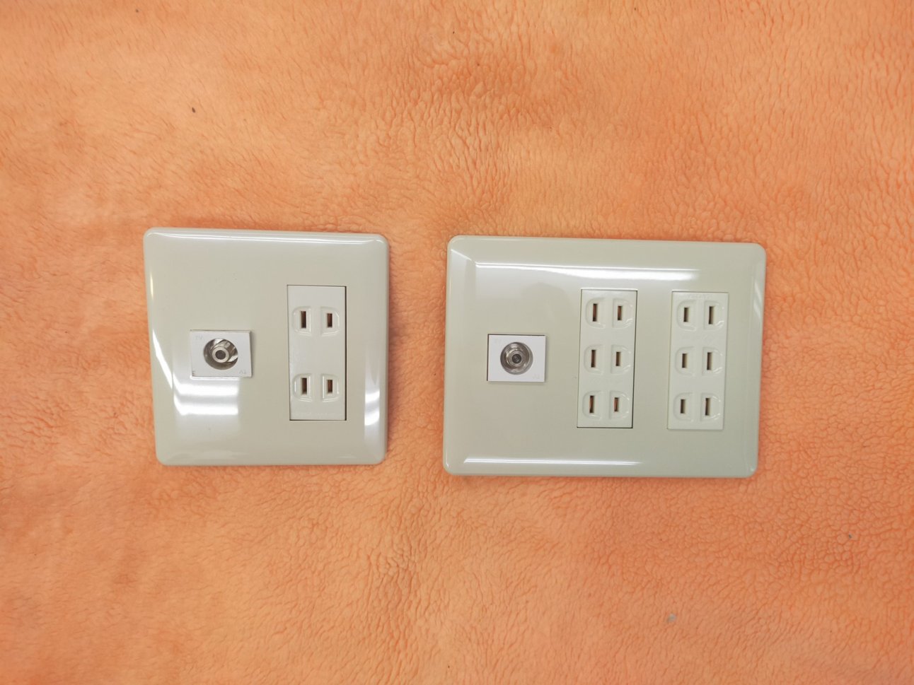 最初についていたものは左側のコンセント。アンテナ+電源コンセント2個でした。