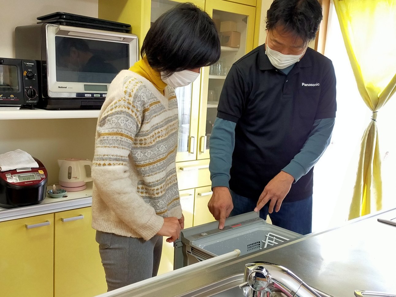 ボタン操作の仕方や残菜等のお掃除の箇所、洗剤のこと食器カゴの事などを簡単に説明させていただきました。