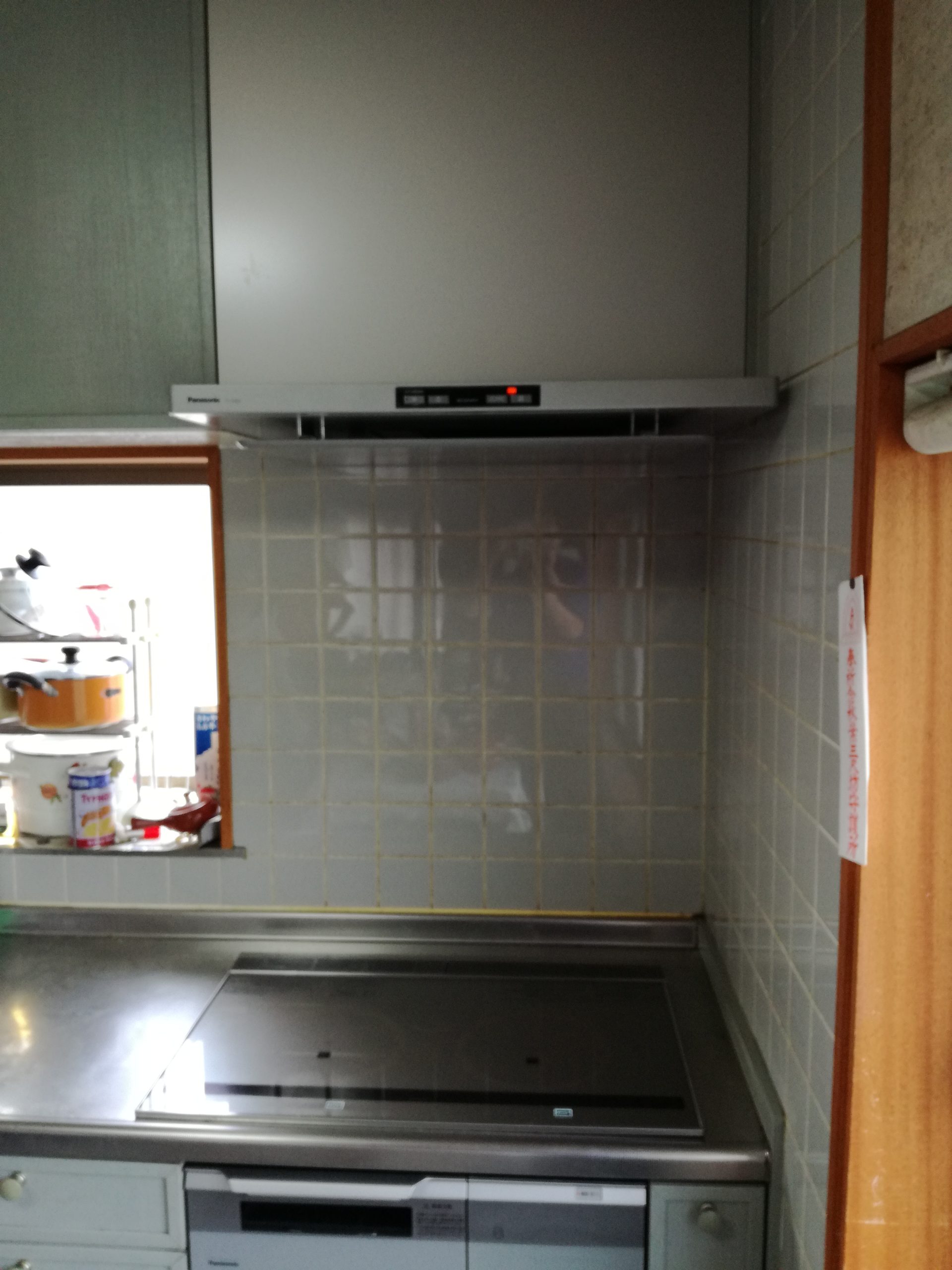 今回は、IHコンロとの同時購入いただきましたので、換気扇とIHコンロの自動連動にしていただきました。コンロを使うと自動的に換気扇が運転します。