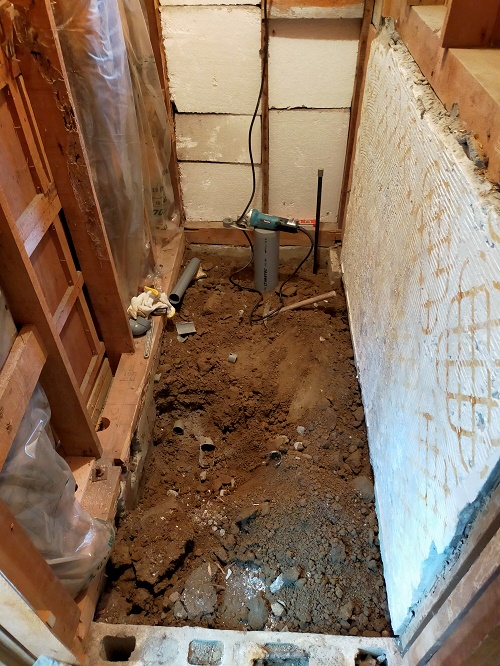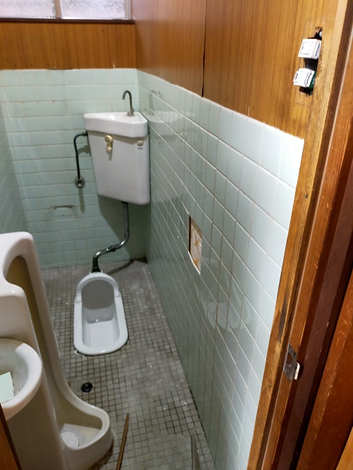 和式からのアラウーノ交換の為、床や壁面、タイル天井すべて撤去しての工事となります。